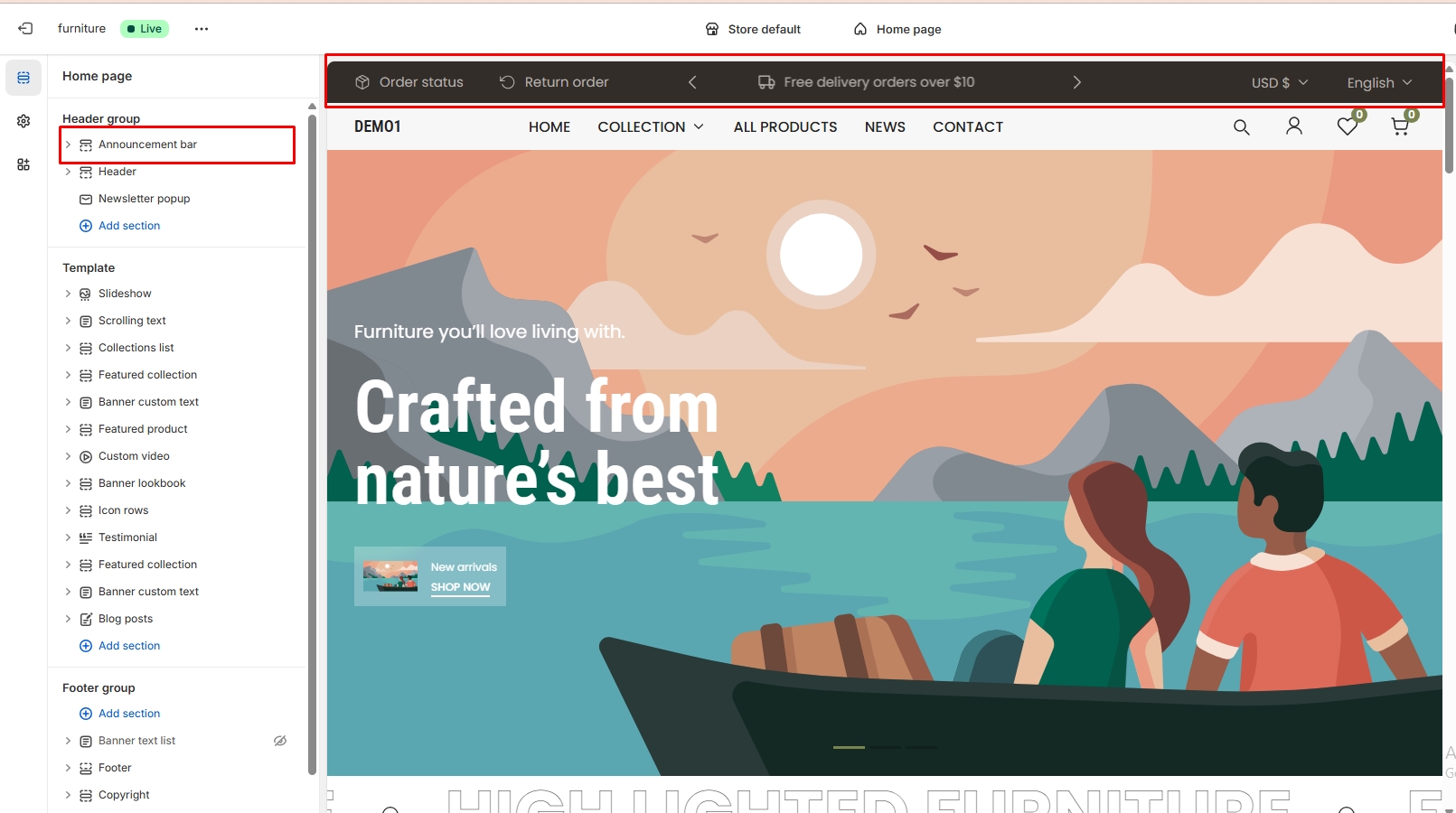 - Announcement bar