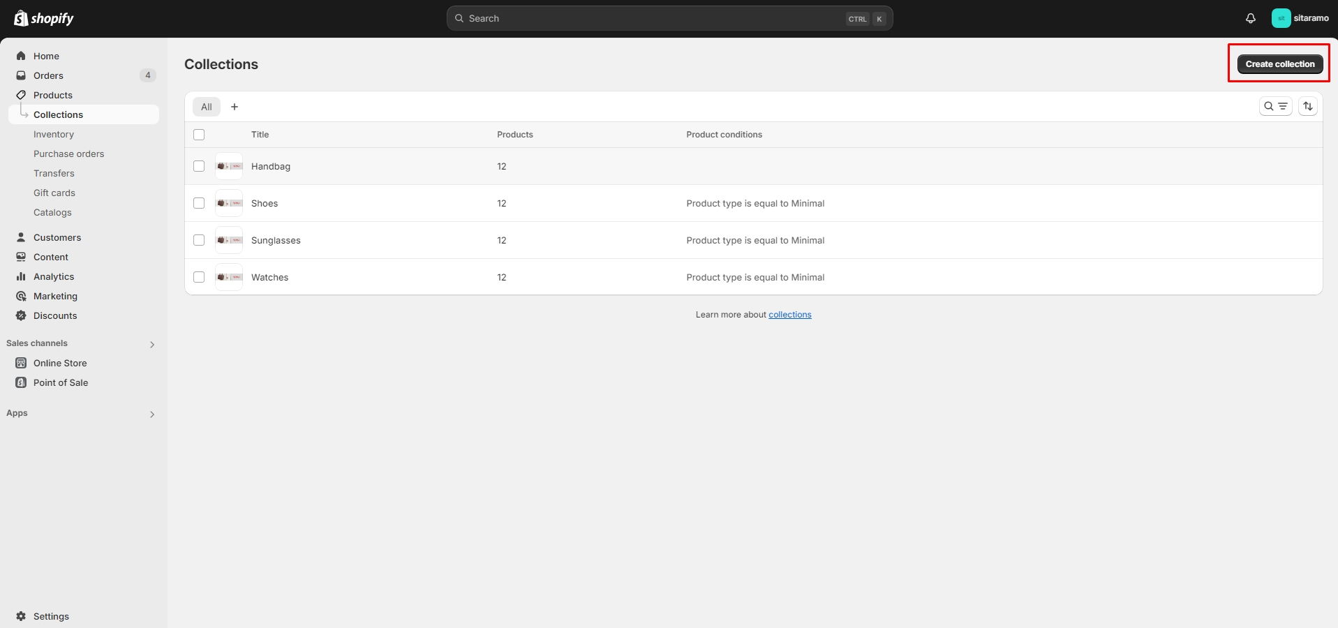 Regarding Shopify Admin, In the left-hand sidebar, go to Products and then click on Collections. Click on the Create Collection button that is located in the right-hand corner.