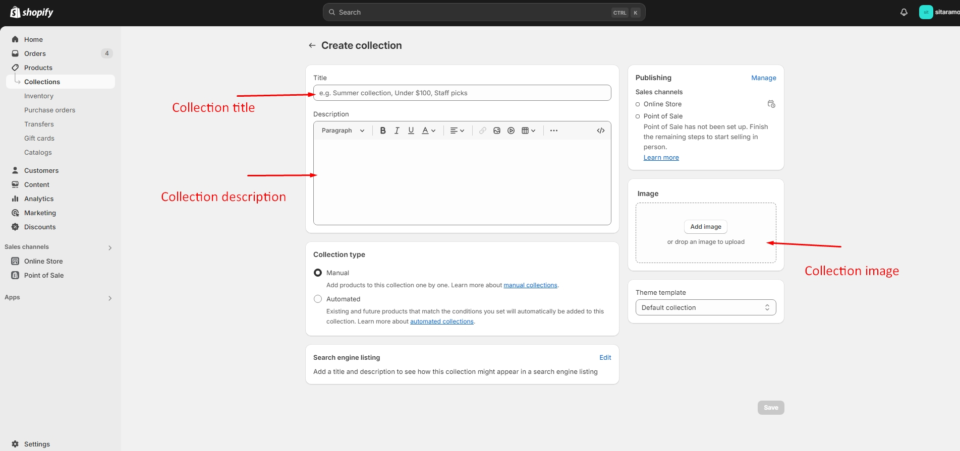 Enter the Collection title, Collection description and Collection image on respective field