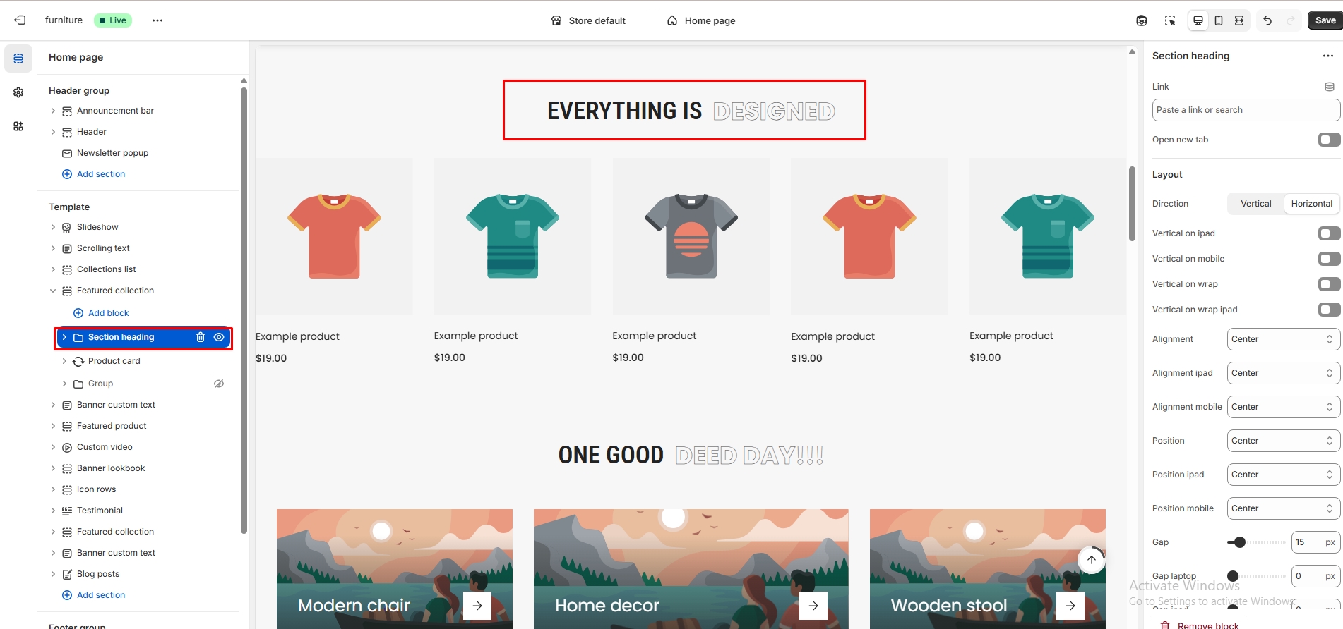 Section heading common property: You can adjust heading text property.