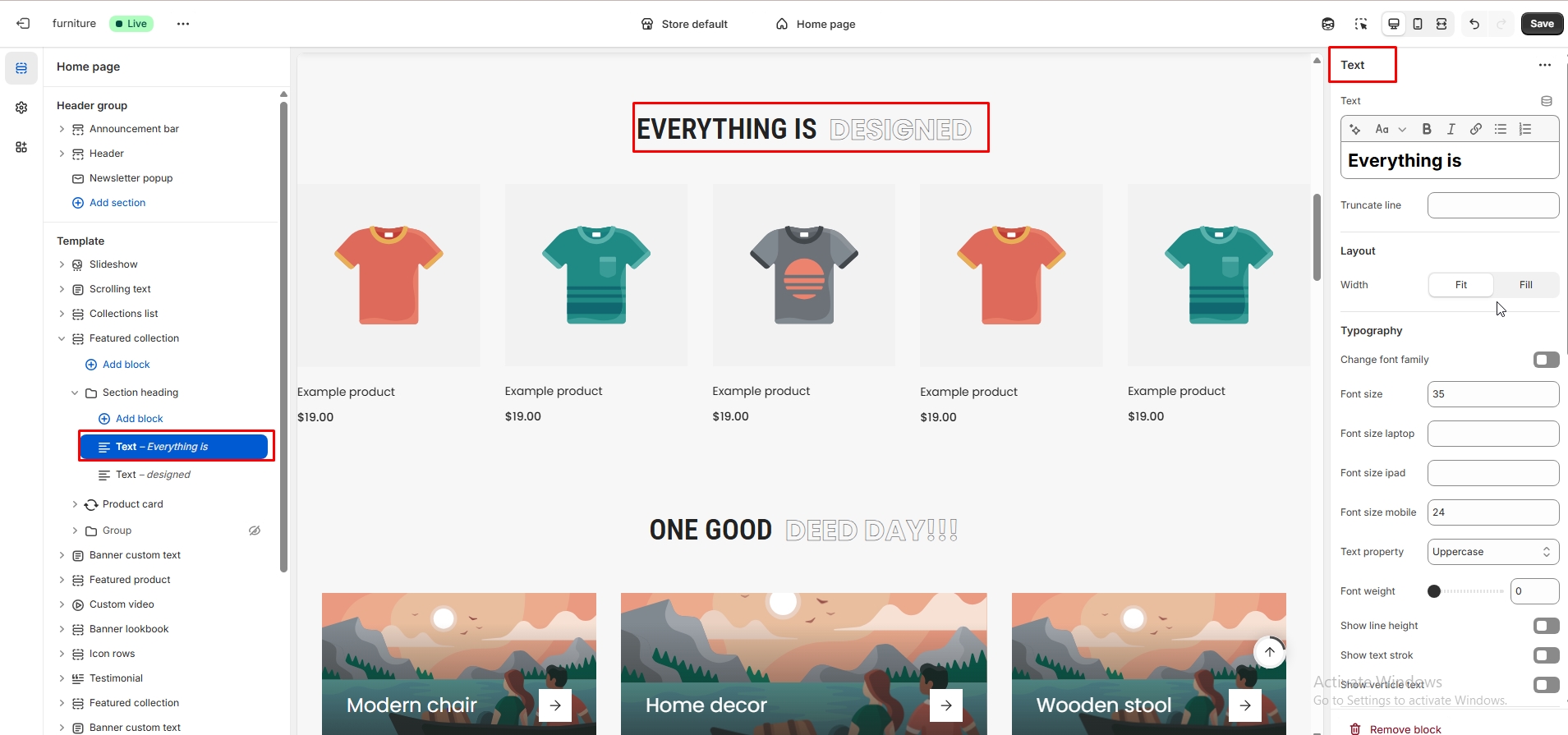 - Typography settings