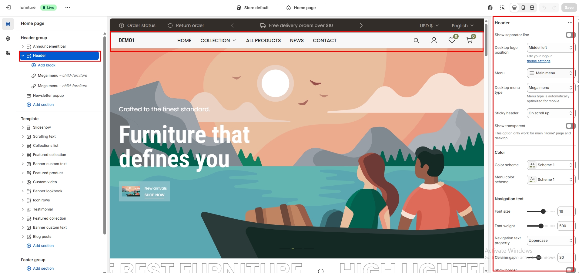 - Setting up a menu similar to a demo store?