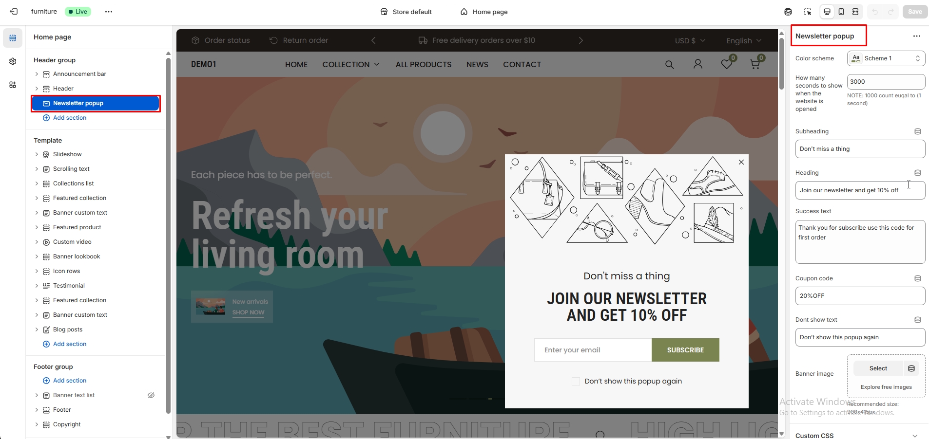 - Newsletter popup