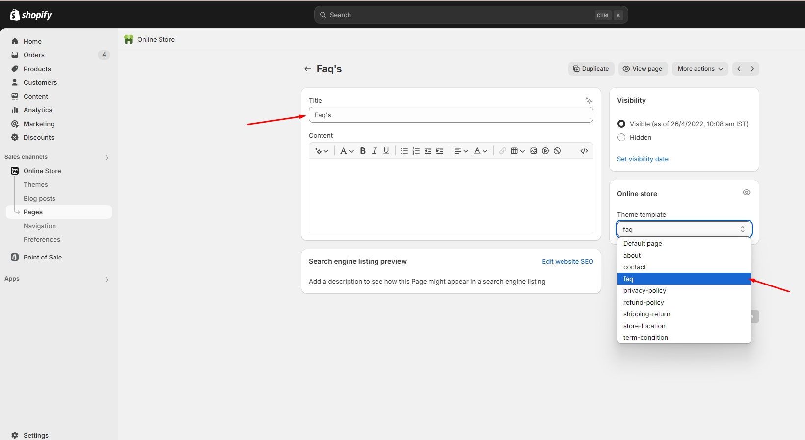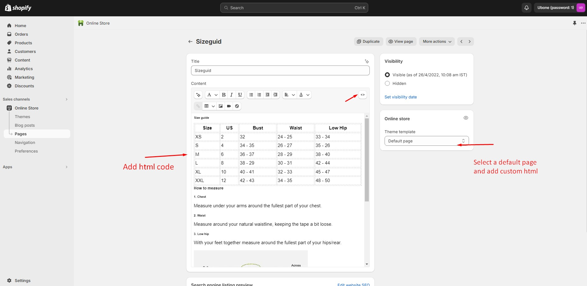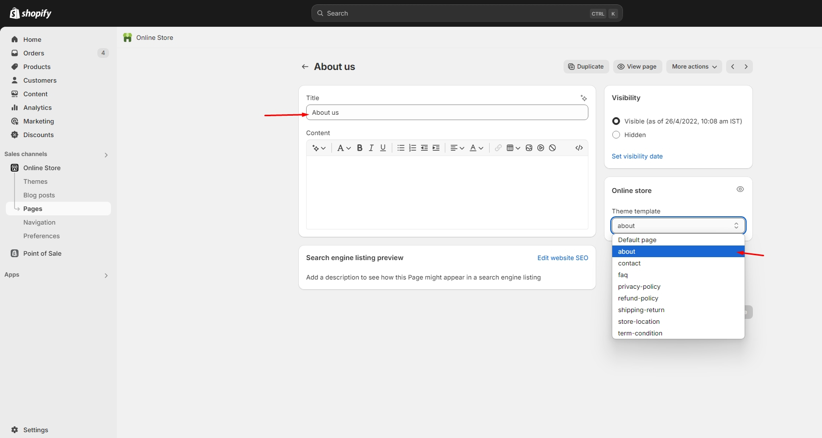 Left sidebar under Online store > Pages > Customize after logging into the admin panel