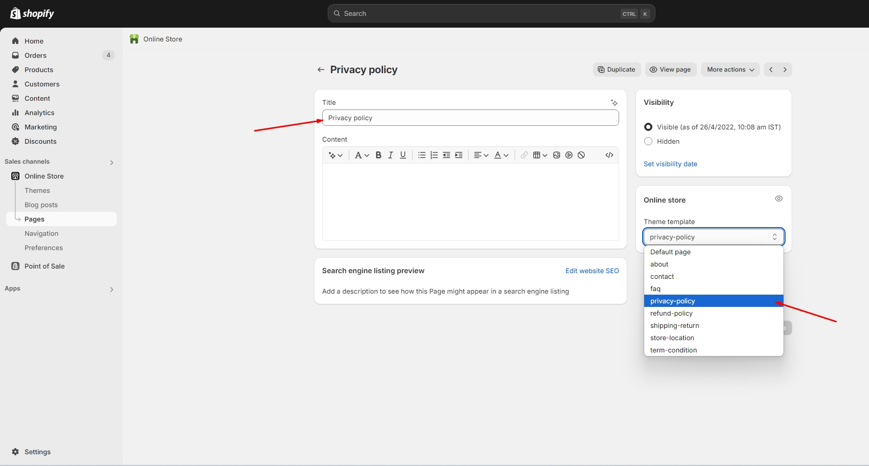 Top bar Select Page > Privacy Policy