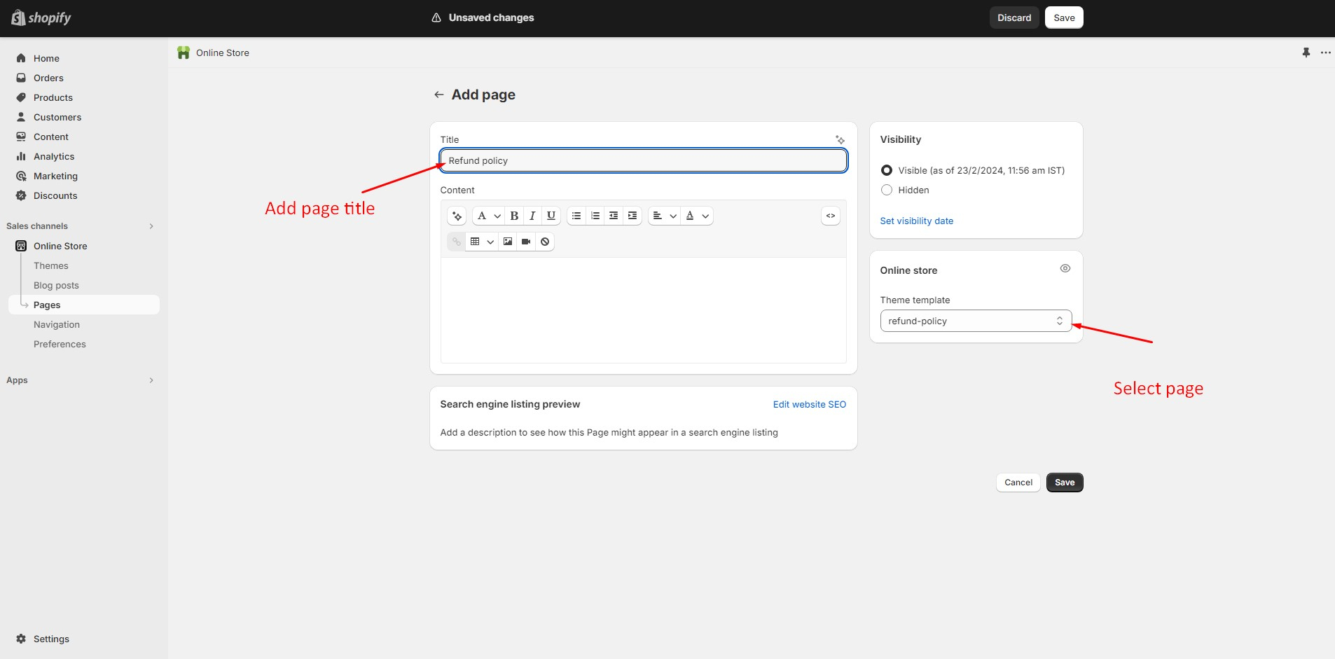 Top bar Select Page > Refund Policy