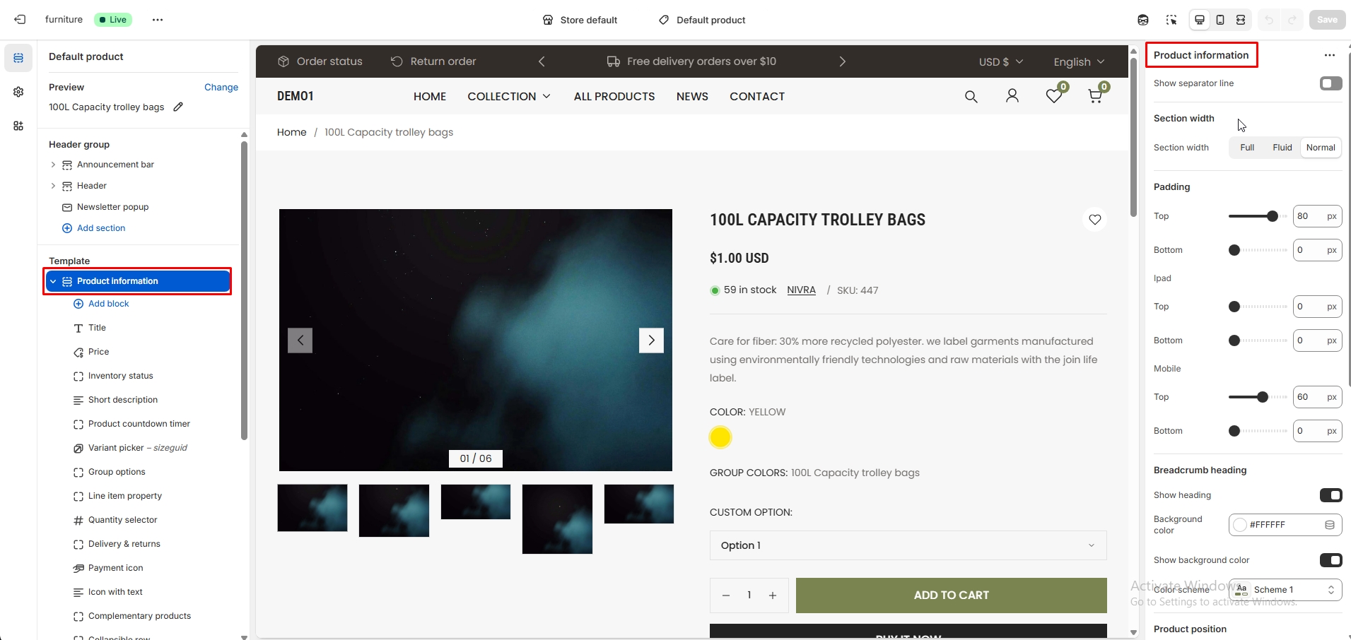 It has a fully responsive width adjusts automatically to any screen size or resolution. Theme have with lot of option like Header, Footer, Home layout, Fully responsive, Shopify builder, Drag & drop, Contact form, Powerful theme option, Color option, Typography option, Section padding option, Button option, Cart drawer option, Collection shop option, Product shop option, Blog option, Currency option, Product timer option, Import & Export page option etc...
