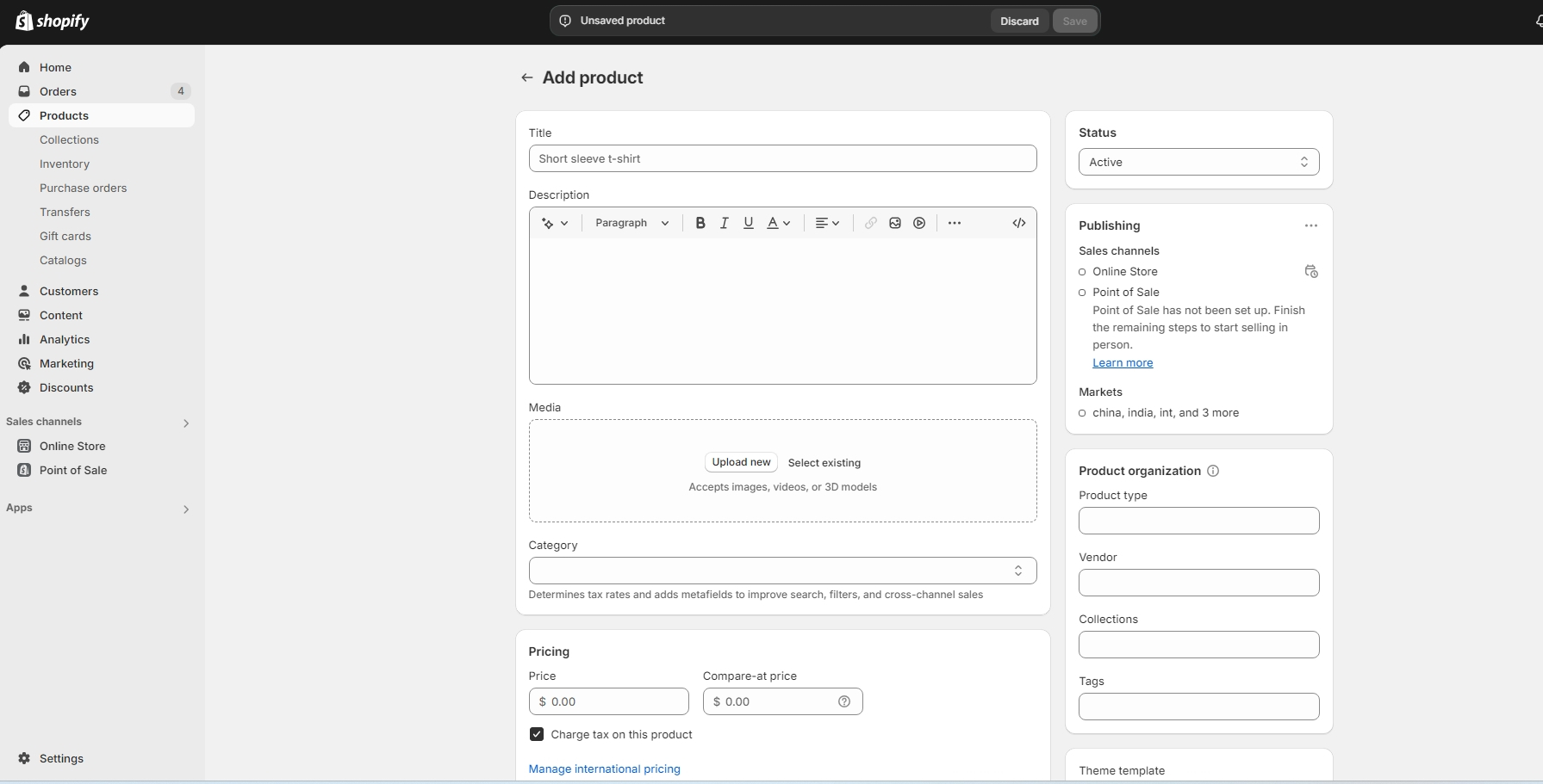 Add the product title, description, price on respective field and upload product images on media field