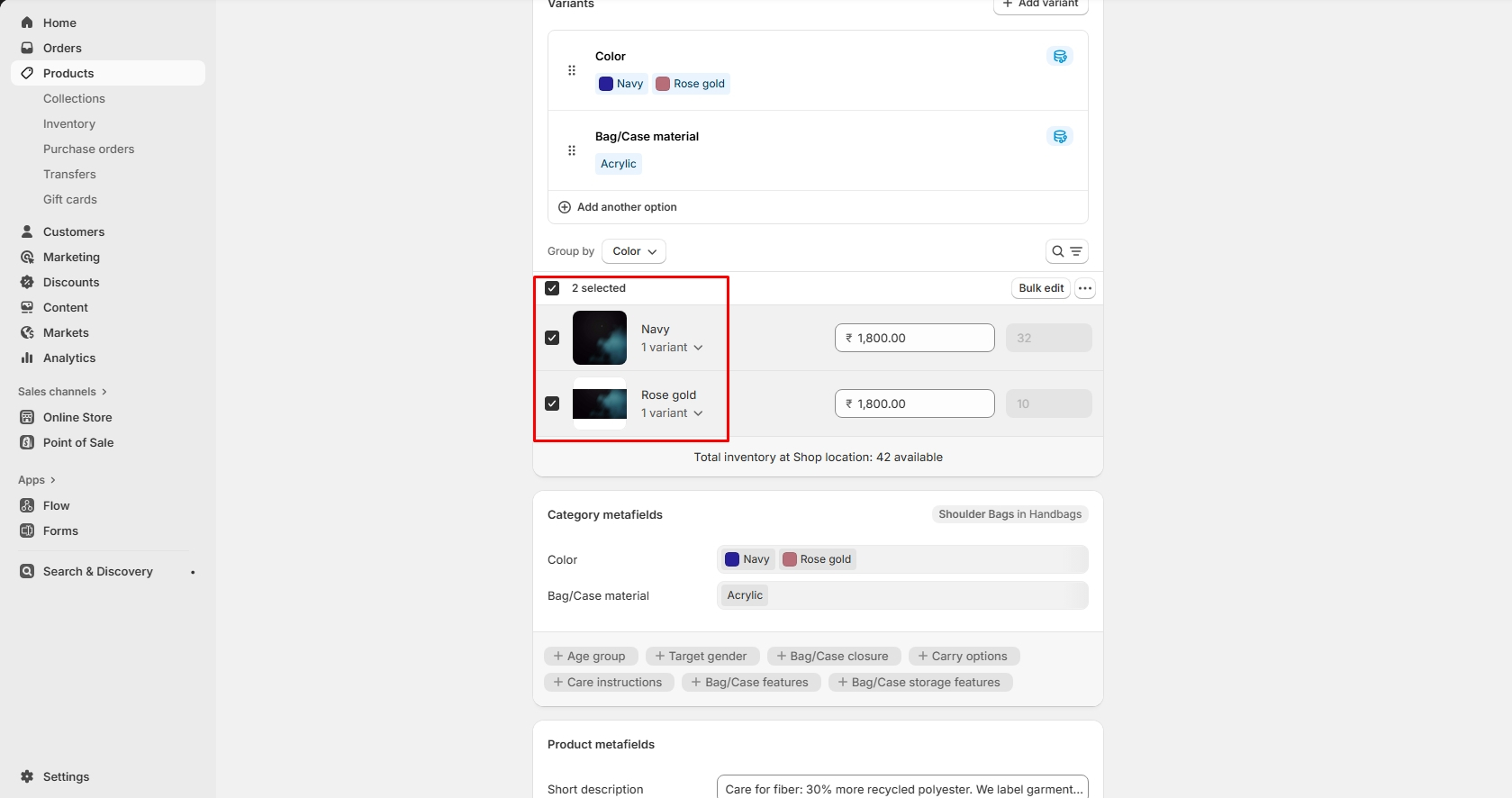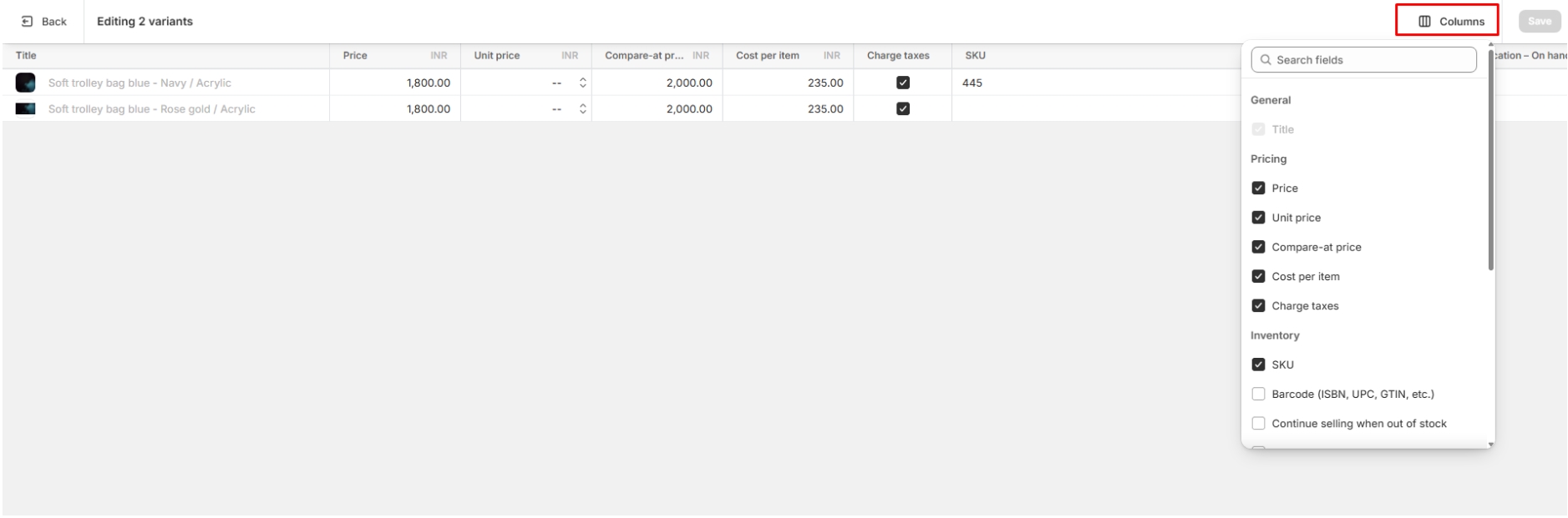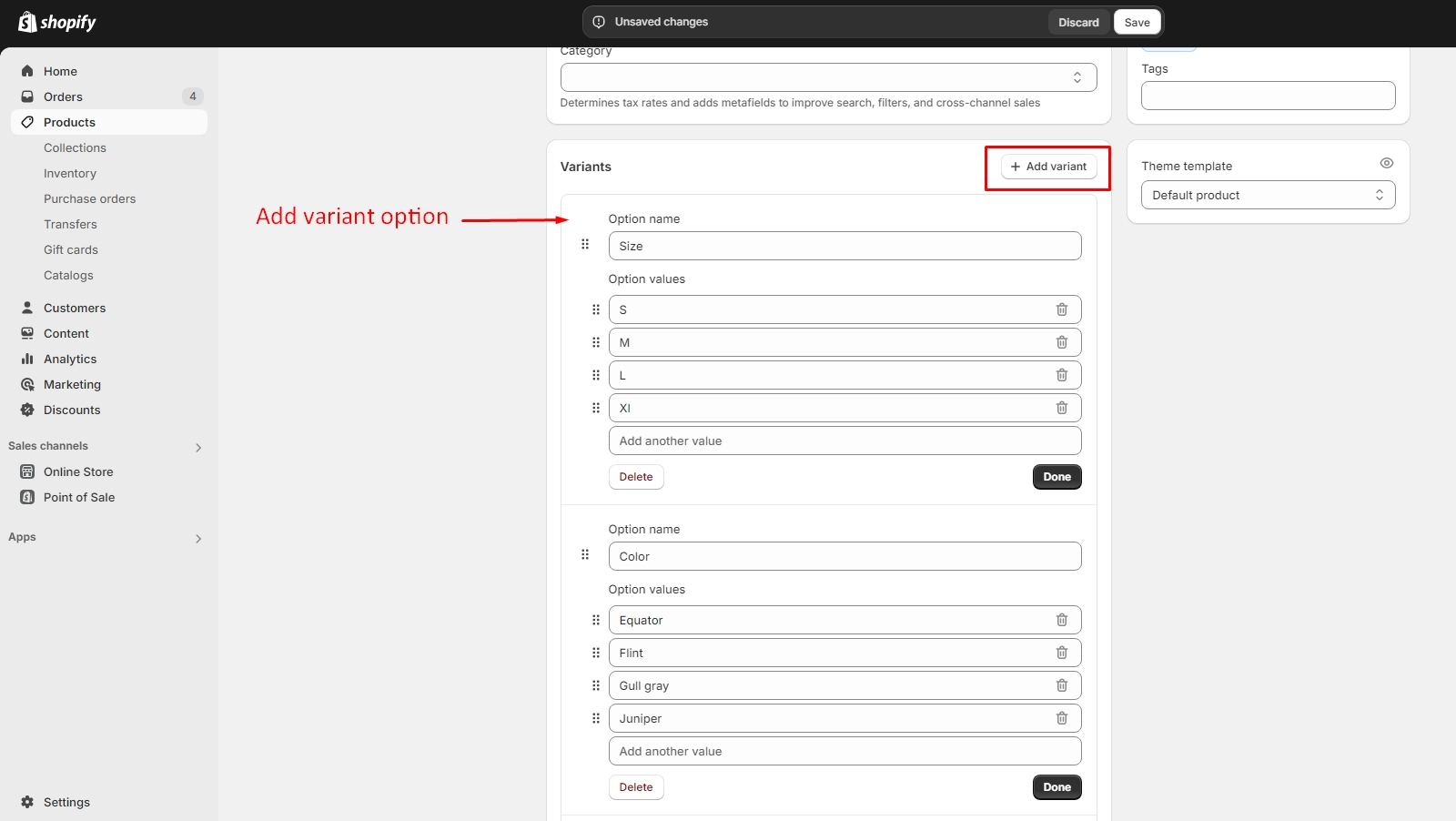 Look for a section related to variants or options. This is where you can manage different versions of the product, such as size, color, or style.