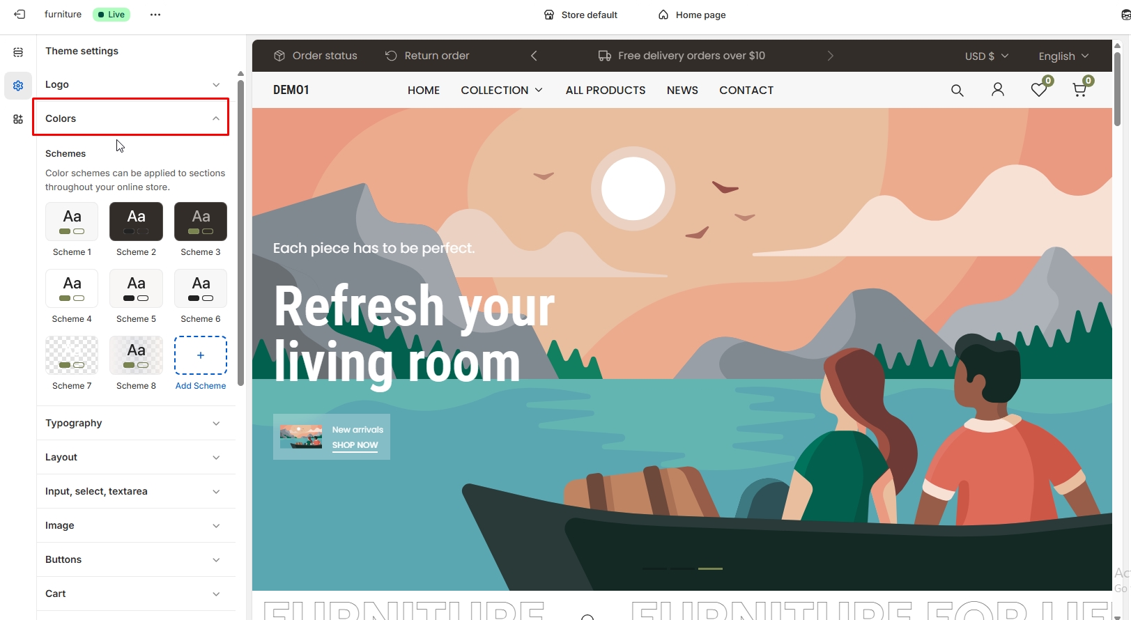 Left sidebar settings icon > Colors setting