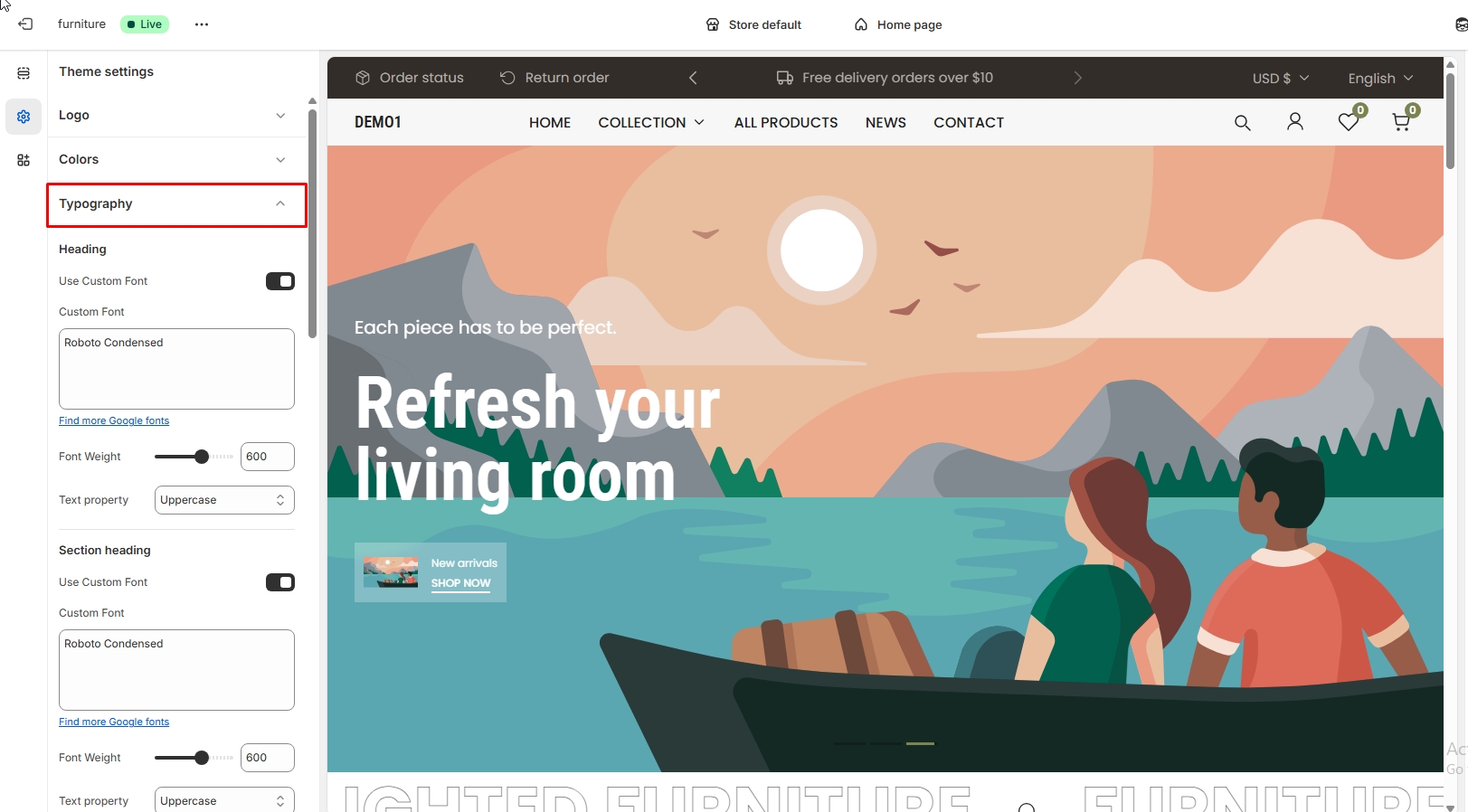 Section heading font family: You can adjust heading font family.