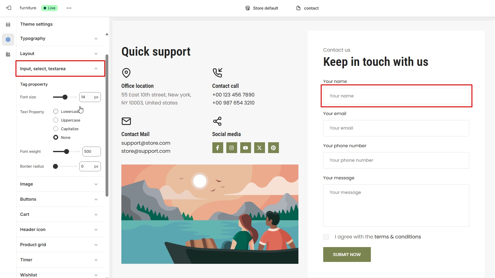 Text Property: You can adjust input text property.