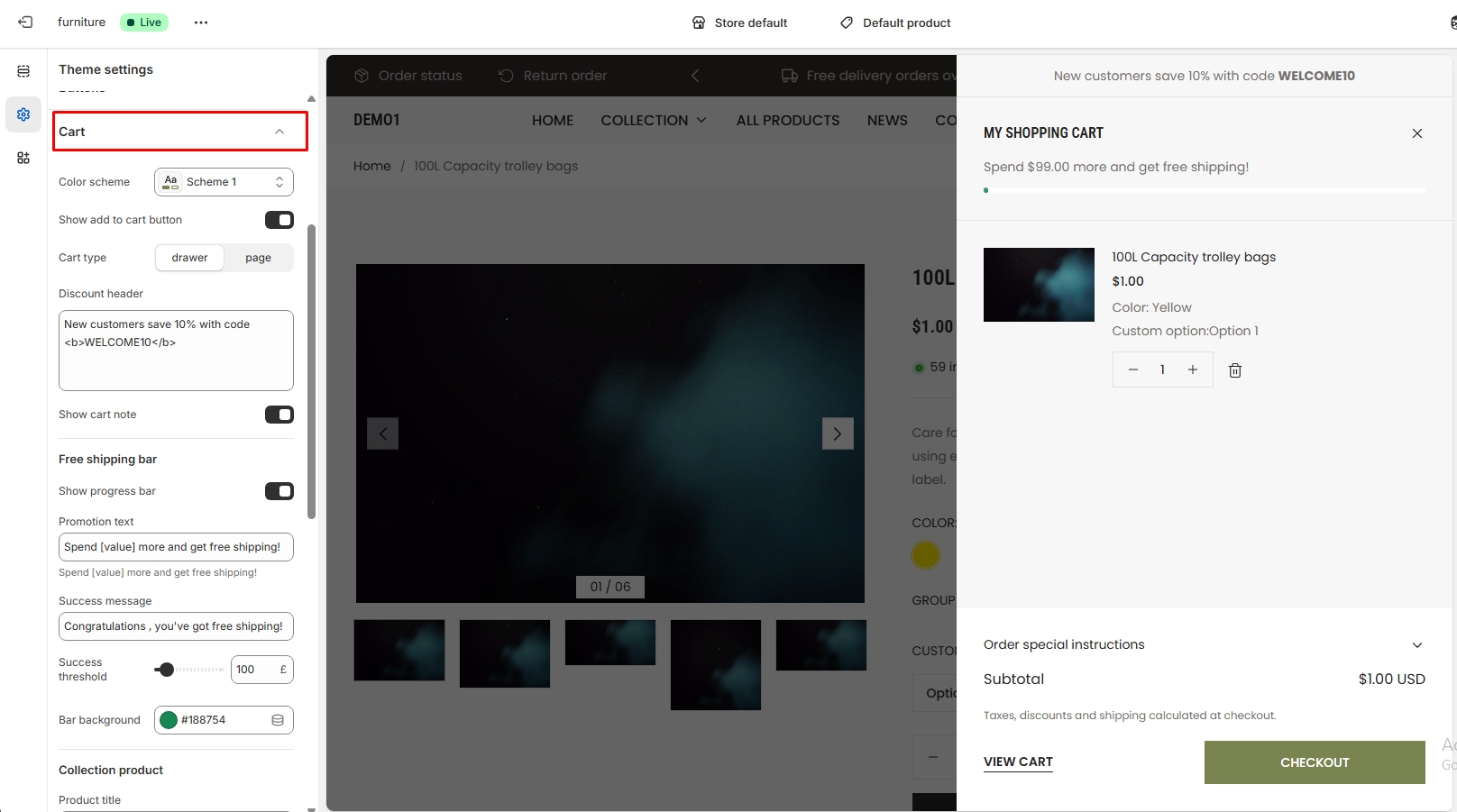 - Cart drawer